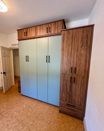 Murphy Beds are fold-down beds with real mattresses that are hidden behind premium cabinetry when in the up position. This allows the homeowner to use the room as a work, crafting, or exercise space while still having an extra bed available for guests.