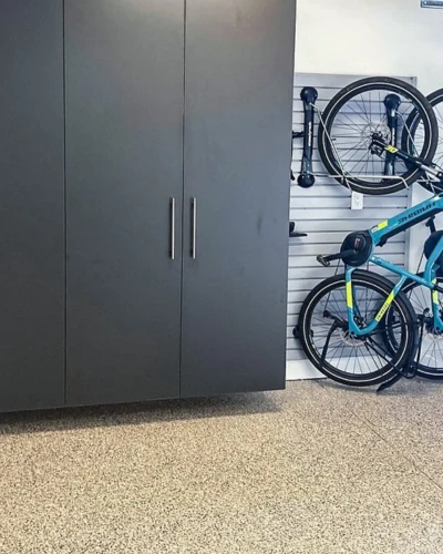 Add the perfect finishing touches to your garage with slatwall accessories, bike racks, and lighting. Epoxy flooring is the final detail that ties it all together.